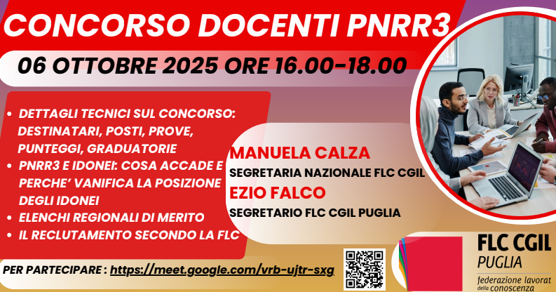 Concorso personale docente PNRR3. Iniziativa sindacale FLC CGIL Puglia All’albo sindacale ex art.25 legge 300/1970