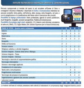 Percorso quinquennale al termine del quale si può accedere all’Esame di Stato e conseguire il Diploma di Maturità. Il diplomato in Grafica e Comunicazione interviene nei processi produttivi della grafica, dell’editoria, della stampa, della fotografia, del web, e cura la progettazione e la pianificazione dell’intero ciclo di lavorazione dei prodotti.